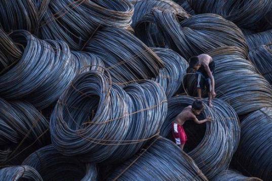 Dos chicos buscan piezas metálicas para ganarse la vida en el embarcadero de Manila, Filipinas.