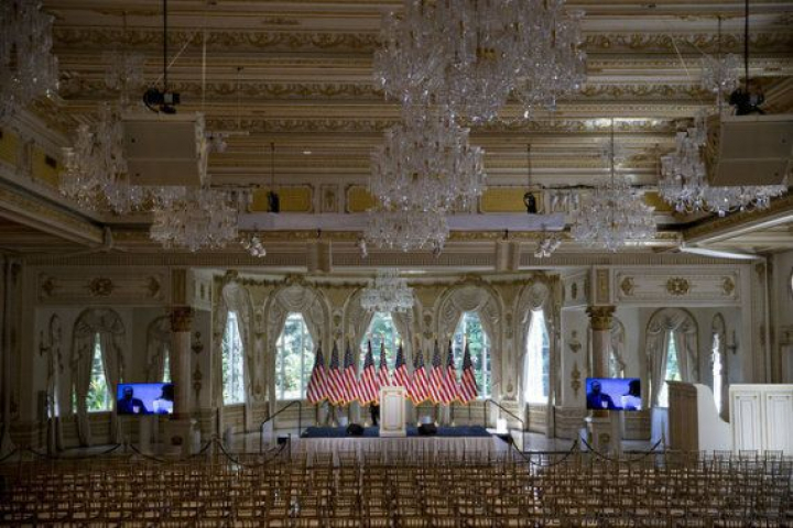 El salón en el que se casaron los Trump. En la foto aparece decorado para una rueda de prensa que concedió Trump en 2016.