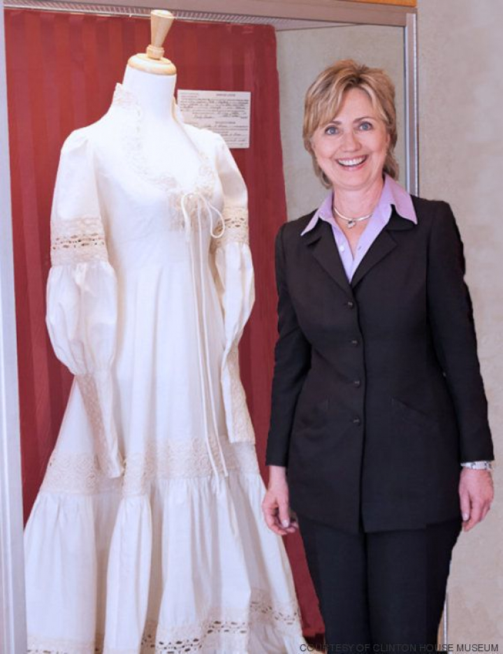 Hillary se compró por 53 dólares (48 euros) un vestido de encaje victoriano de Jessica McClintock en una tienda de un centro comercial de Fayetteville con su madre la tarde anterior a la boda.