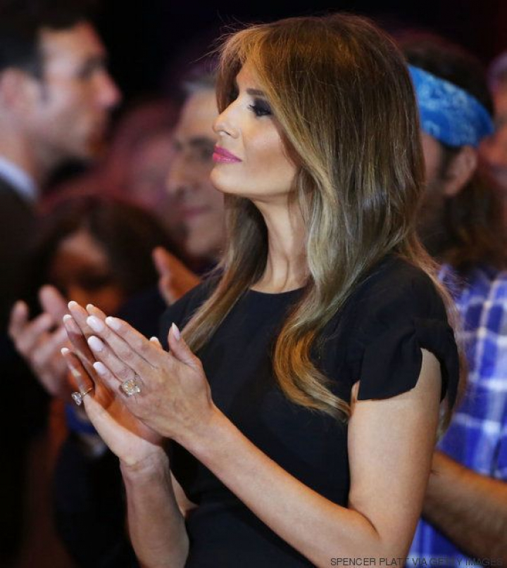 Es difícil encontrar información sobre el anillo de Melania. Según The Hollywood Reporter, Donald compró este anillo de 12 quilates tallado en esmeralda por un millón y medio de dólares (1,35 millones de euros), aunque se estima que es la mitad de su valor de venta. Otros medios afirman que a Donald le regalaron el anillo a cambio de promocionar el reality showThe Apprentice.