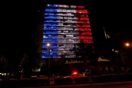 Los jefes de Estado del mundo entero se han solidarizado con Francia y banderas a media asta ondean en las principales sedes de gobierno y edificios emblemáticos por todo el globo, algunos de los cuales se han teñido de azul, blanco y rojo, los colores de la bandera francesa.