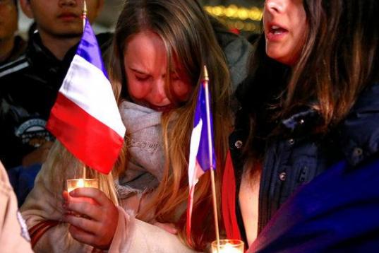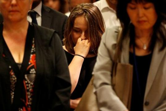 Franceses residentes en Japón se congregan en la embajada gala en Tokio para rendir tributo a los fallecidos en el atentado.