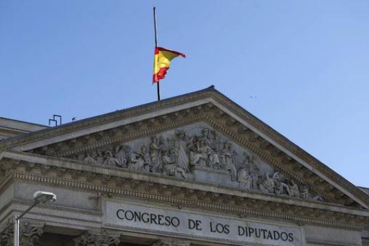 La bandera española ondea a media asta en el Congreso de los Diputados.