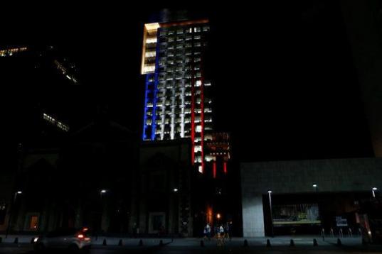 El Monumento a la Independencia de México, iluminado como la tricolor de Francia.