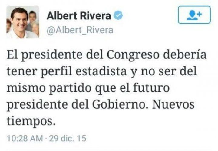 Este martes ha sido elegida la ministra de Fomento en funciones, Ana Pastor, como presidenta del Congreso gracias al acuerdo al que llegaron este lunes Mariano Rajoy (PP) y Albert Rivera (Ciudadanos). El naranja siempre había dicho que era mejor un candidato de otro partido e, incluso, en la anterior legislatura apoyó a Patxi López (PSOE) para ese cargo.