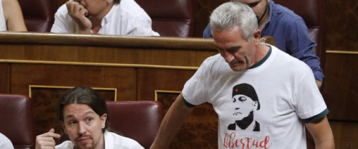 Un día caluroso y camisetero. El nuevo diputado Diego Cañamero (Unidos Podemos, Jaén) ha lucido una camiseta en la que se pedía libertad para el sindicalista encarcelado Andrés Bódalo. Los diputados de Compromís también han querido imprimir en su torso su reivindicación: “No nos resignamos, otro gobierno es posible”.
