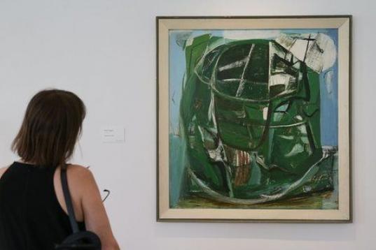 Los londinenses también podrán contemplar Foyer del británico Patrick Caulfield, un acrílico que mezcla grises con rojo carmín y un amarillo apagado y que esperan vender por entre 400.000 y 600.000 libras (de 480.000 a 720.000 euros).