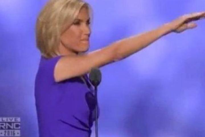 Laura Ingraham es una locutora de radio conservadora que habló en el escenario de la Convención Nacional Republicana este miércoles con un final inesperado: un accidental saludo nazi.
