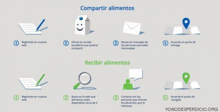 Los pasos para empezar a compartir comida son fáciles. Como se explica en el vídeo más arriba, basta con registrarse en la web yonodesperdicio.org y publicar un anuncio describiendo el alimento que se ofrece: nombre, foto del estado actual, cantidad, localización y fecha de caducidad. La entrega (gratuita) se acuerda entre los particulares interesados.