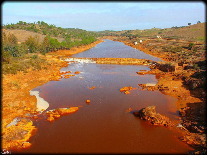 Debe este cauce su nombre al color rojizo de las aguas. Río encendido por la disolución en su corriente de sulfuros y metales pesados procedentes de las extracciones mineras, de pirita mayormente y también de cobre y manganeso, que ya obtenían los pueblos íberos hace la friolera de 5.000 años. Tiempo después, los romanos inauguraron el que sería mayor yacimiento minero a cielo abierto de Europa.