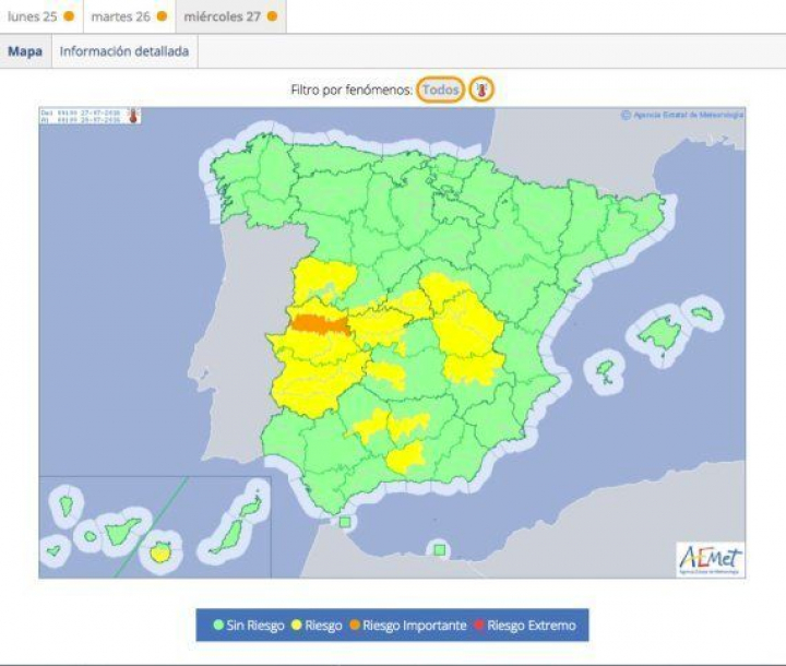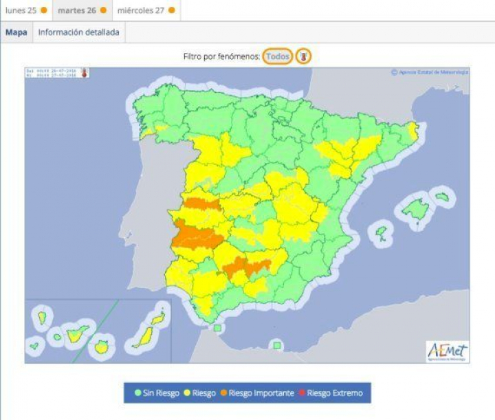 Aquí puedes ver qué alertas hay en cada zona estos días: