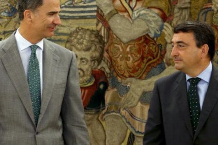 El rey ha reanudado esta mañana en el Palacio de la Zarzuela su ronda de consultas políticas al recibir al portavoz del PNV, Aitor Esteban, que ha tenido ocasión de explicar al Monarca la posición de su grupo ante una eventual sesión de investidura de Mariano Rajoy como jefe del Ejecutivo.