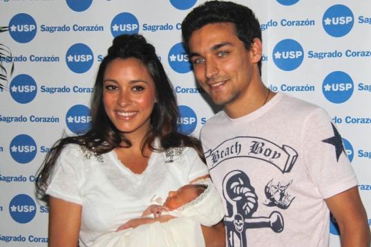 Felices y sonrientes, el futbolista Jesús Navas y su mujer Alejandra Moral han presentado en Sevilla a su primer hijo, Jesús. Llevan casados poco más de un año.