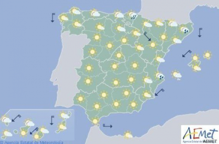 La Agencia Estatal de Meteorología (Aemet) prevé para este lunes cielos despejados en amplias zonas de España y descensos notables de las temperaturas en los litorales este, sudeste peninsular y en las Islas Baleares.