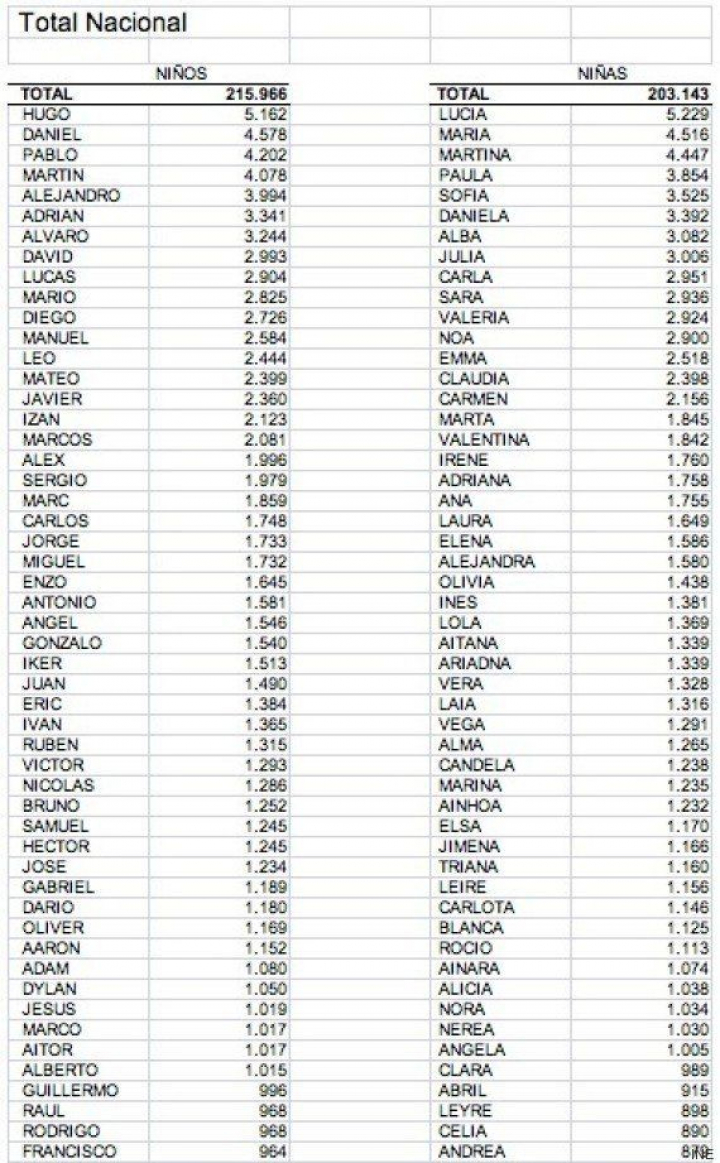Cuando el profesor pasa lista entre sus alumnos, es fácil que varios levanten la mano porque su nombre coincide con el de otros compañeros. No es de extrañar que esta escena tenga como protagonistas a niños llamados Hugo, Daniel, Pablo... o a niñas llamadas Lucía, María o Martina.