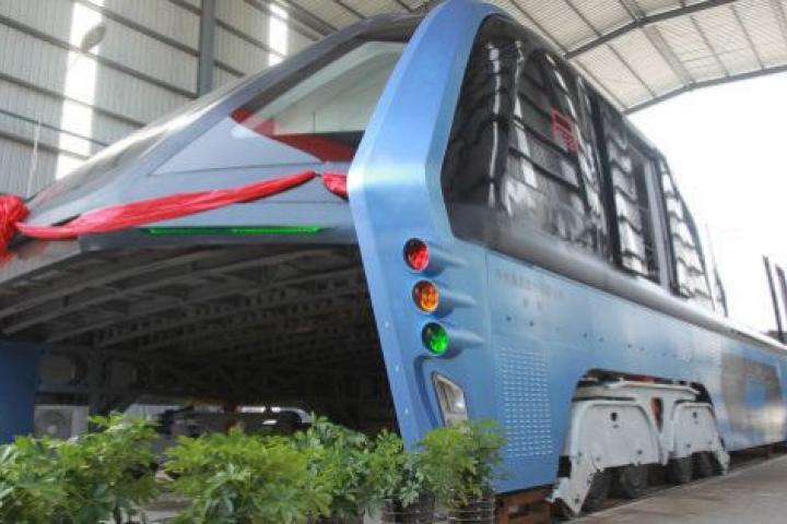 A model of an innovative street-straddling bus called Transit Elevated Bus is seen after a test run in Qinhuangdao, Hebei Province, China, August 3, 2016. The test bus currently consists of one segment, and is capable of carrying 300 people, acc...China Stringer Network / Reuters