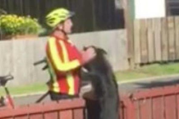 Un pequeño alto en el camino es lo que hace todos los días este cartero de la localidad neozelandesa de Tauranga. Cada mañana, al pasar por delante de la casa de Michael Collins, el profesional se baja de la bicicleta para dejar las cartas en el buzón y saludar a un colega. Ese colega es el perro de Collins, un pastor alemán de nueve meses que recibe con entusiasmo las caricias de su amigo.