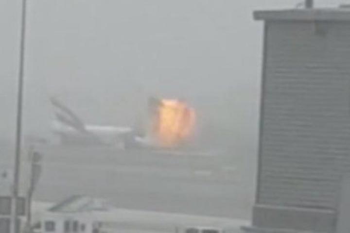 El momento en el que un motor de un avión de Emirates explota en Dubai