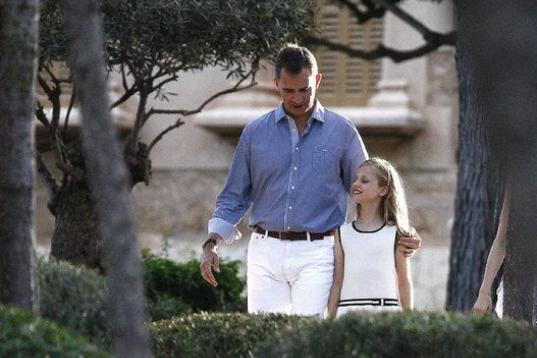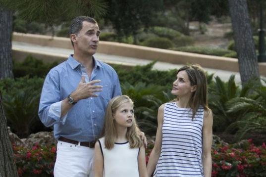 Al igual que en los dos veranos anteriores de este reinado, Felipe y Letizia han dado la bienvenida a los jardines de su residencia mallorquina a una nutrida representación de medios y han posado para las cámaras fotográficas y de televisión con la Princesa Leonor y la infanta Sofía, esta vez no ante el palacio, sino en un entorno distinto de los jardines.