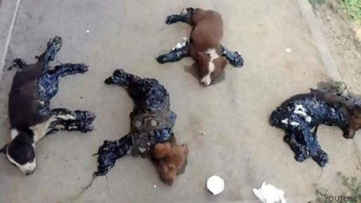 En ocasiones el hombre es capaz de hacer cosas horribles. Cuatro cachorros han sido encontrados cubiertos de alquitrán y pegados al suelo en la ciudad de Iasi (Rumanía), con la intención de que los perros muriesen abrasados por el calor y se quedasen adheridos al asfalto.