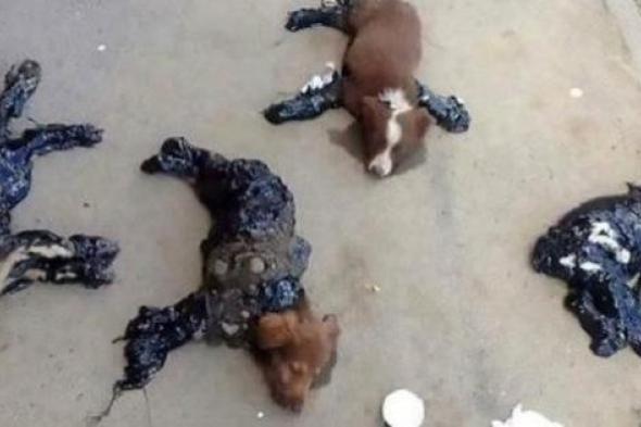Bañan en alquitrán a cuatro perros para que se queden pegados al asfalto