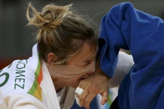 La primera de las victorias del judo español la firmó la valenciana, en un combate que tuvo que ser detenido para que fuese atendida de una herida en la nariz. Gómez, que con 32 años hacía su debut olímpico, regresó al 'tatami' del Carioca 2 ataviada con una venda en la cara.
