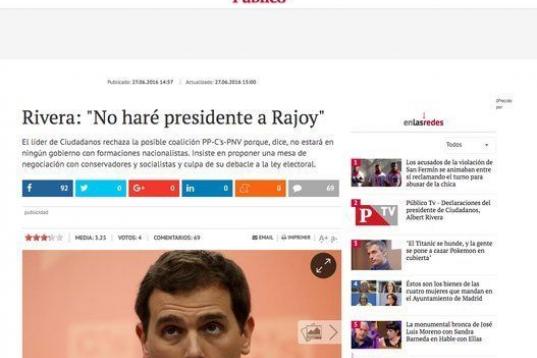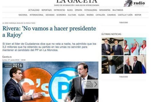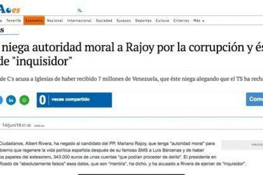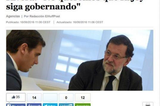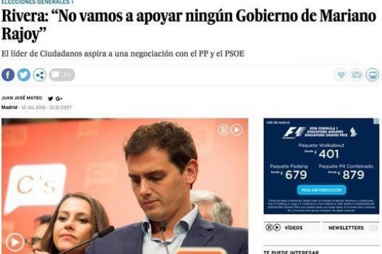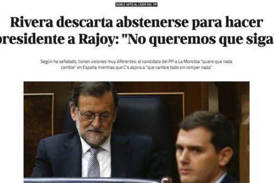 El presidente de Ciudadanos se abre a investir a Rajoy después de negar muchas veces que lo haría. Y la hemeroteca no perdona. Aquí tienes algunas de las noticias que recogieron en su día la rotunda oposición de Rivera al presidente del Gobierno. Una rotundidad que cada vez se ha ido deshaciendo más.