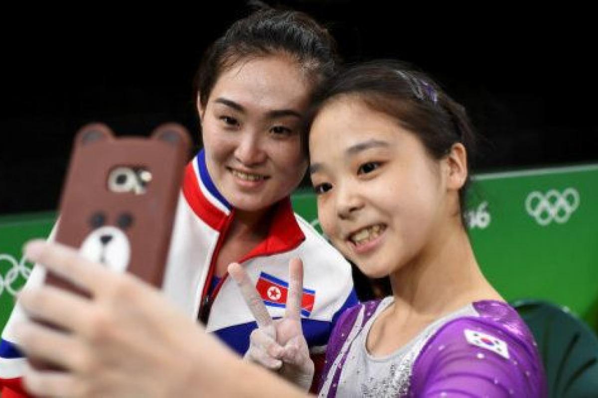 A primera vista son dos gimnastas posando juntas para un selfie. Pero la foto va más allá. En ella salen Lee Eun-ju, competidora de Corea del Sur en los Juegos Olímpicos de Río y Hong Un Jong, la representante de Corea del Norte.
