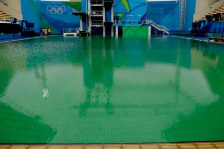 El agua de las piscinas de saltos de trampolín y de waterpolo de los Juegos Olímpicos de Río, en el centro acuático Maria Lenk, pasó esta semana del color azul a otro verde no muy agradable. El Comité Organizador se apresuró a aclarar que la situación no era peligrosa para los deportistas y que obedecía a una reducción del nivel de alcalinidad de las aguas. Admitieron que los responsables de la piscina fallaron por no haber tenido en cuenta que el elevado número de nadadores podía incidir sobre el pH.