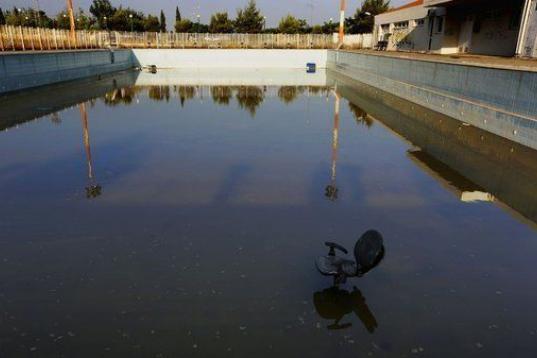 Una silla abandonada ocupa ahora lo que un día fue la piscina olímpica.