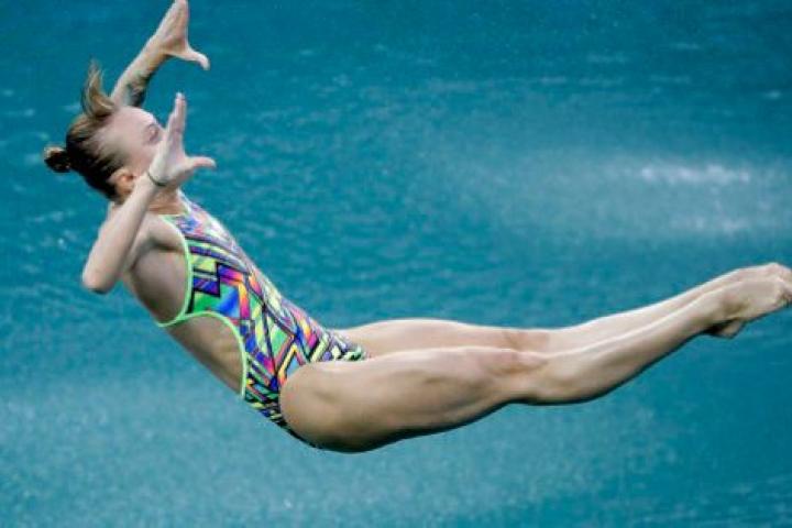 La rusa Nadezhda Bazhina saca un 0,0 en la prueba de salto de trampolín desde tres metros