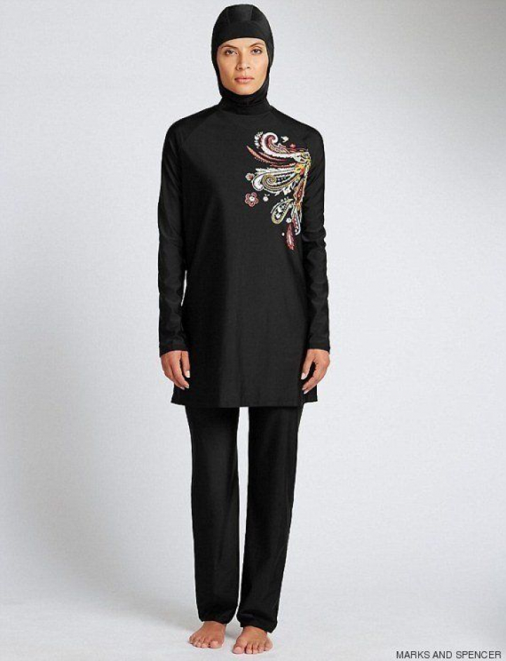 Un bañador que cubre totalmente el cuerpo y el cabello de la mujer, como por ejemplo este, que ofrece la marca británica Marks and Spencer: