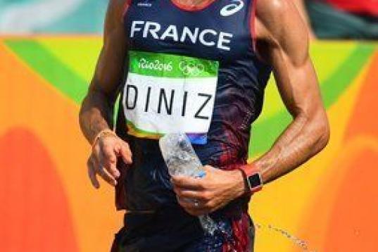 Era la segunda caída del francés, que se había ido por delante desde el disparo de salida en busca de su primera medalla olímpica. Tras recibir la ayuda del personal médico, Diniz se negó a dejar la prueba y reanudó la marcha.