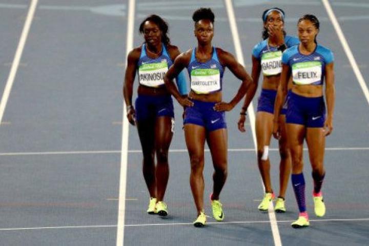 Por la mañana, el equipo estadounidense había perdido el testigo durante el segundo intercambio, entre Félix a Gardner, pero el juez de carrera, tras examinar el vídeo, resolvió que el equipo había sido obstruido por una brasileña.