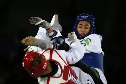 A base de patadas y puñetazos a sus oponentes Kimia Alizadeh Zenoor se convirtió en la primera iraní en ganar una medalla olímpica de bronce en Taekwondo, en la categoría de 57 kilogramos.