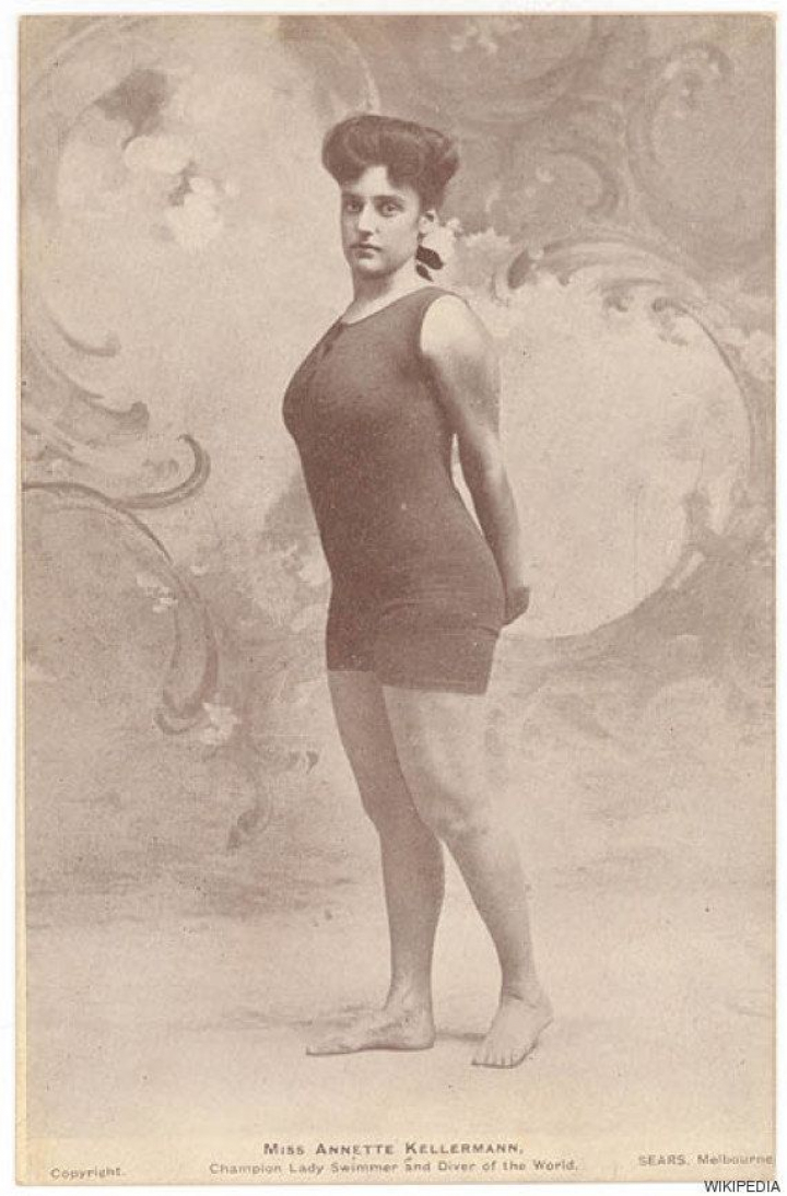 Parece que esta imagen ha cerrado un círculo de casi cien años. Pues no es la primera vez que la policía sanciona a una mujer por la indumentaria que lleva en la playa. En 1907, la nadadora australiana Annette Kellerman, campeona del mundo, fue a una playa vestida con un traje de baño de una pieza. La parte inferior era como unos shorts y acababa justo encima de sus rodillas.