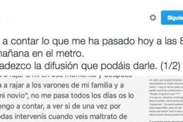 La mujer ha redactado una mala experiencia que ha tenido por la mañana, cuando se dirigía al hospital a hacerse una resonancia. La joven ha sido vejada e insultada por un señor en el metro de Madrid, que según cuenta la propia afectada estaba "haciendo sus necesidades" en el vagón.