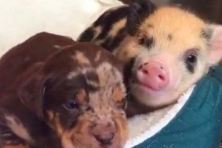 La extraña pareja formada por un cachorro de perro y un cerdito ha enamorado a los usuarios de Instagram y no es para menos. El vídeo con la tierna estampa lleva más de 300.000 reproducciones y se ha ganado el corazón de miles de usuarios.