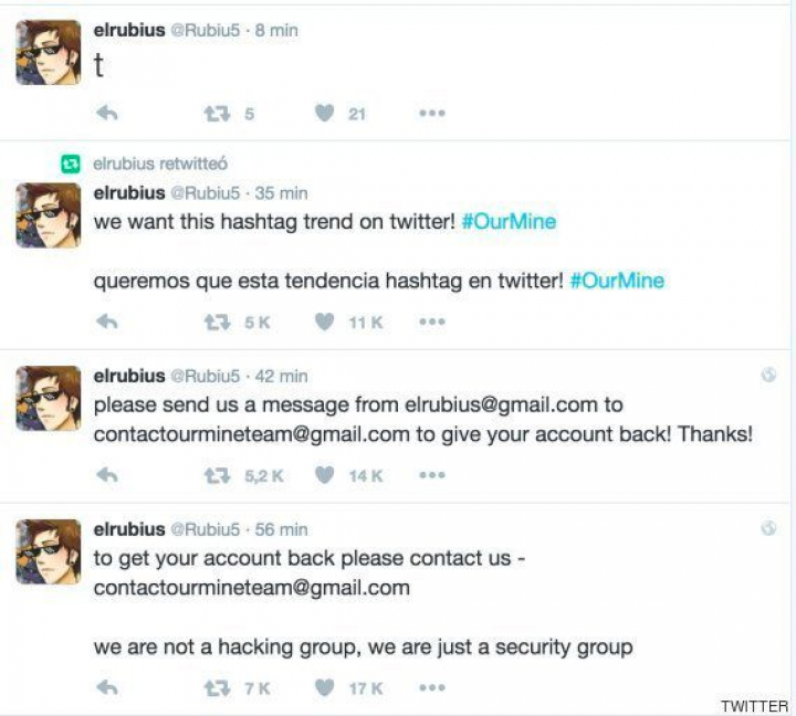 Pasadas las siete de la tarde aparecía en la cuenta de Rubén Doblas, un mensaje en inglés en el que decía: "para recuperar tu cuenta ponte en contacto con nosotros". Además el mensaje continuaba con un: "No somos un grupo de hackers, somos un grupo de seguridad".