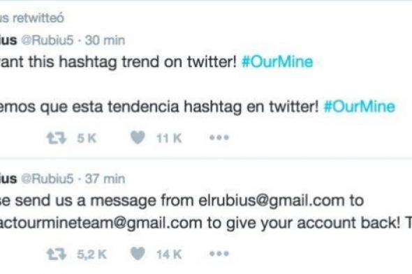 La cosa no quedó ahí. Poco después hubo un tercer mensaje en el que pedían a los seguidores del youtuber que la etiqueta #OurMine debía ser tendencia en la red social.