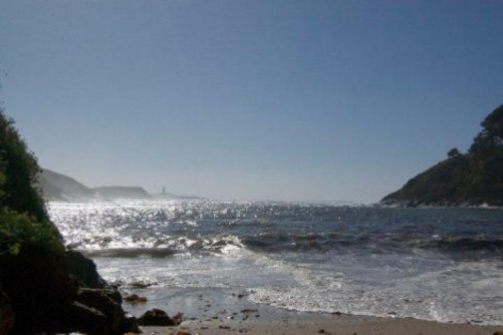 PLAYA DE ANCORADOURO (Cabo de Udra, Bueu Pontevedra). Espacio protegido, tiene un pequeño aparcamiento cerca. Pequeña y tranquila, está salpicada de verde y rocas.