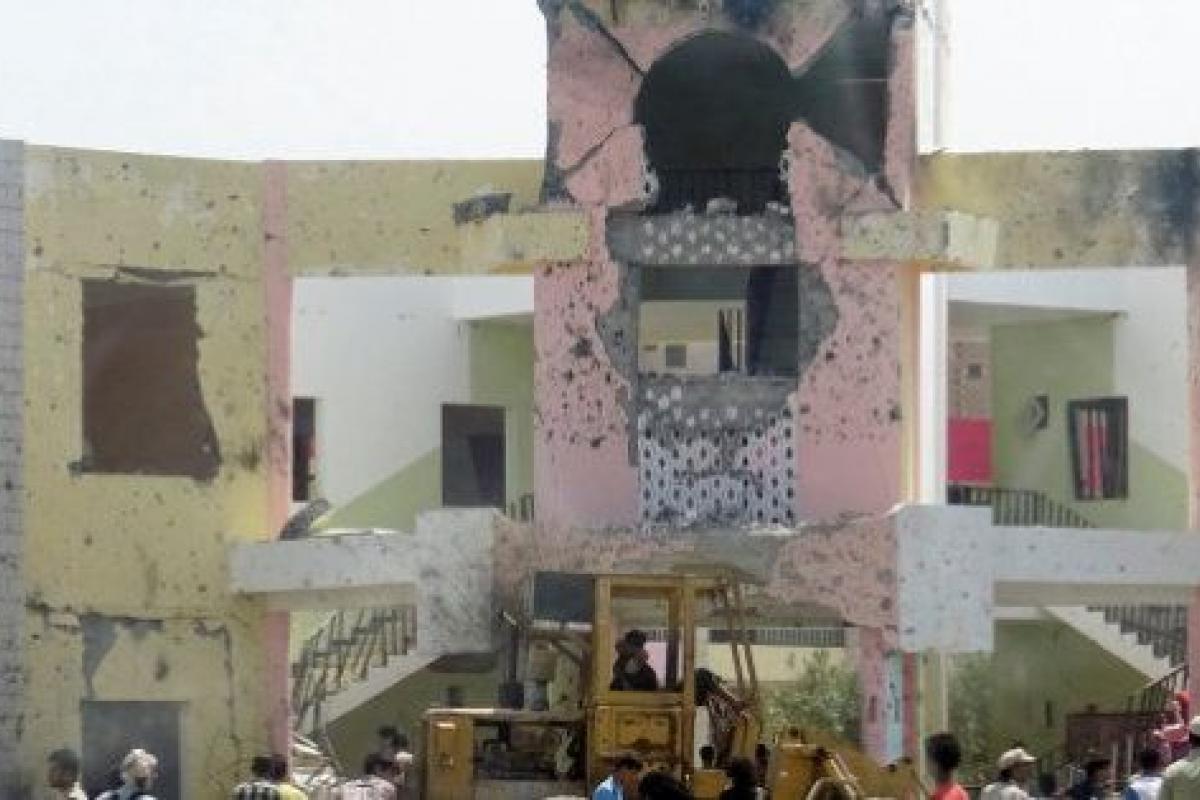 El terrorista suicida ha irrumpido al volante de un coche bomba en una escuela empleada para el reclutamiento de soldados y ubicada en el barrio de Al Mansura.