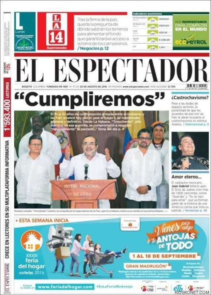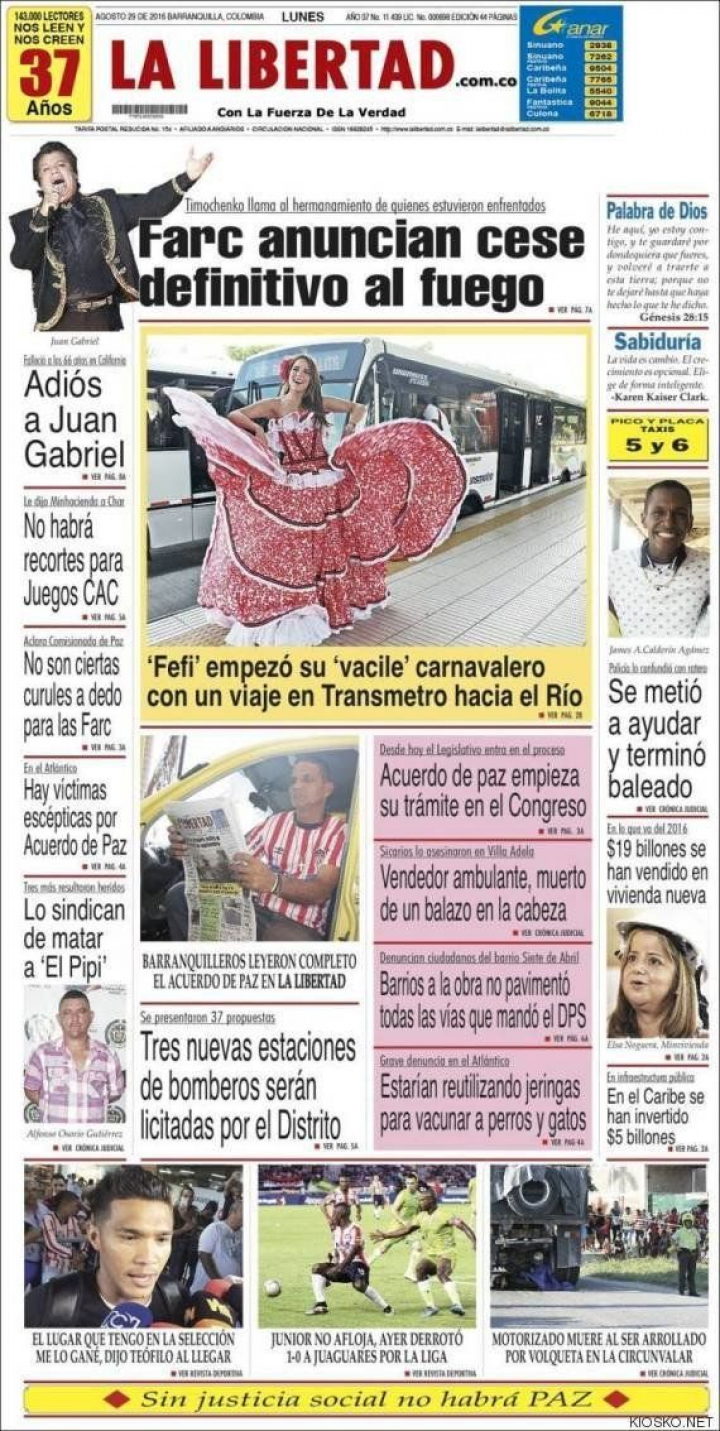 Así vive Colombia su primer día de paz tras el acuerdo con las FARC