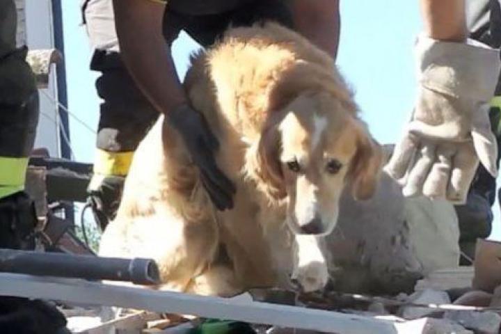 Bomberos de Italia rescatan a un perro superviviente del terremoto de Italia (VÍDEO)