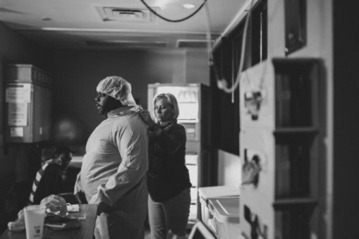 "En esta foto, la madre está en la fase de transición de la dilatación —ese momento tan intenso que viene antes de empezar a empujar— sin epidural y sin ningún otro tipo de anestesia. Había contratado a una doula, pero su marido fue su mayor apoyo".