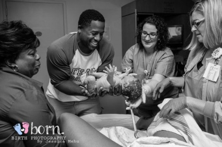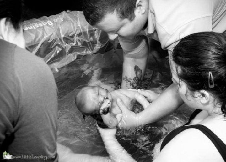 "El padre que aparece en la foto ayudó en el nacimiento de su hijo, que nació con el saco amniótico intacto en un parto en casa y en el agua".