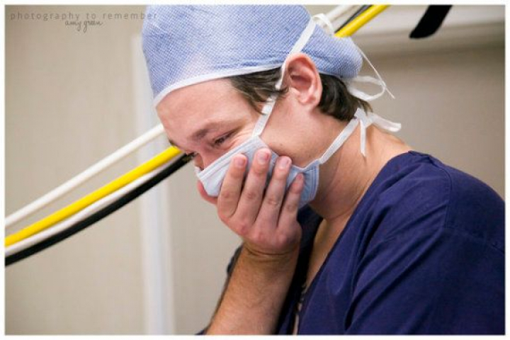 "Esta pareja llevaba muchísimo tiempo queriendo tener un bebé. Mientras esperábamos a que el padre saliera del quirófano, su hermana dijo: '¡Le oigo llorar desde aquí!'. Un minuto más tarde, lo vimos salir llorando de alegría y sujetando a su hija recién nacida".