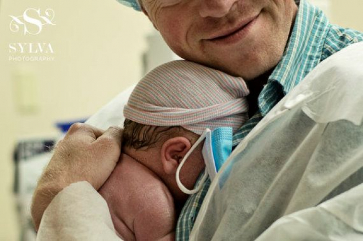 "Los padres desempeñan un papel muy importante en las cesáreas. Este tranquilizó y apoyó a su mujer y a su hijo recién nacido".