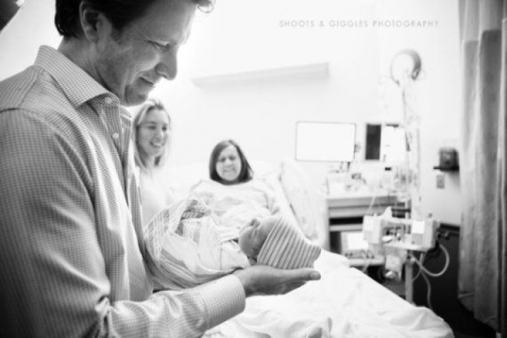 "En la foto se puede ver al padre coger a su hija por primera vez, y detrás a su mujer y a la gestante subrogada".