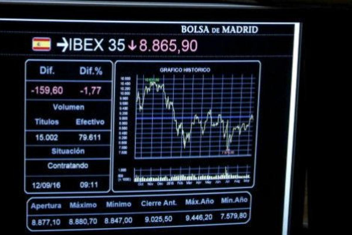 El Ibex 35 ha ampliado sus pérdidas al 2,53% en la media sesión de este lunes, lo que llevaba al selectivo a abandonar la cota psicológica de los 8.800 enteros (8.797,3) por temor a una subida de los tipos de interés por parte de la Reserva Federal americana y tras el descenso de las Bolsas asiáticas.